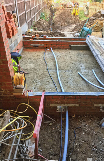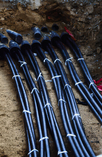 Professional installation of underground service cables from the nearest pillar or pit to connect new properties to the electricity network, including trenching and conduit work.